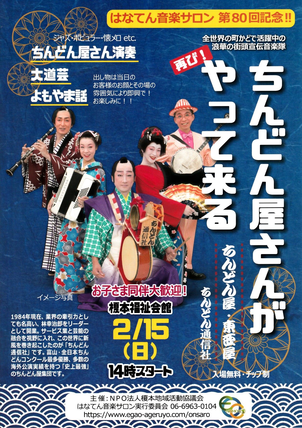 2月15日(日)「はなてん音楽サロン/ちんどん屋さんが 再び!やって来る」に出演します