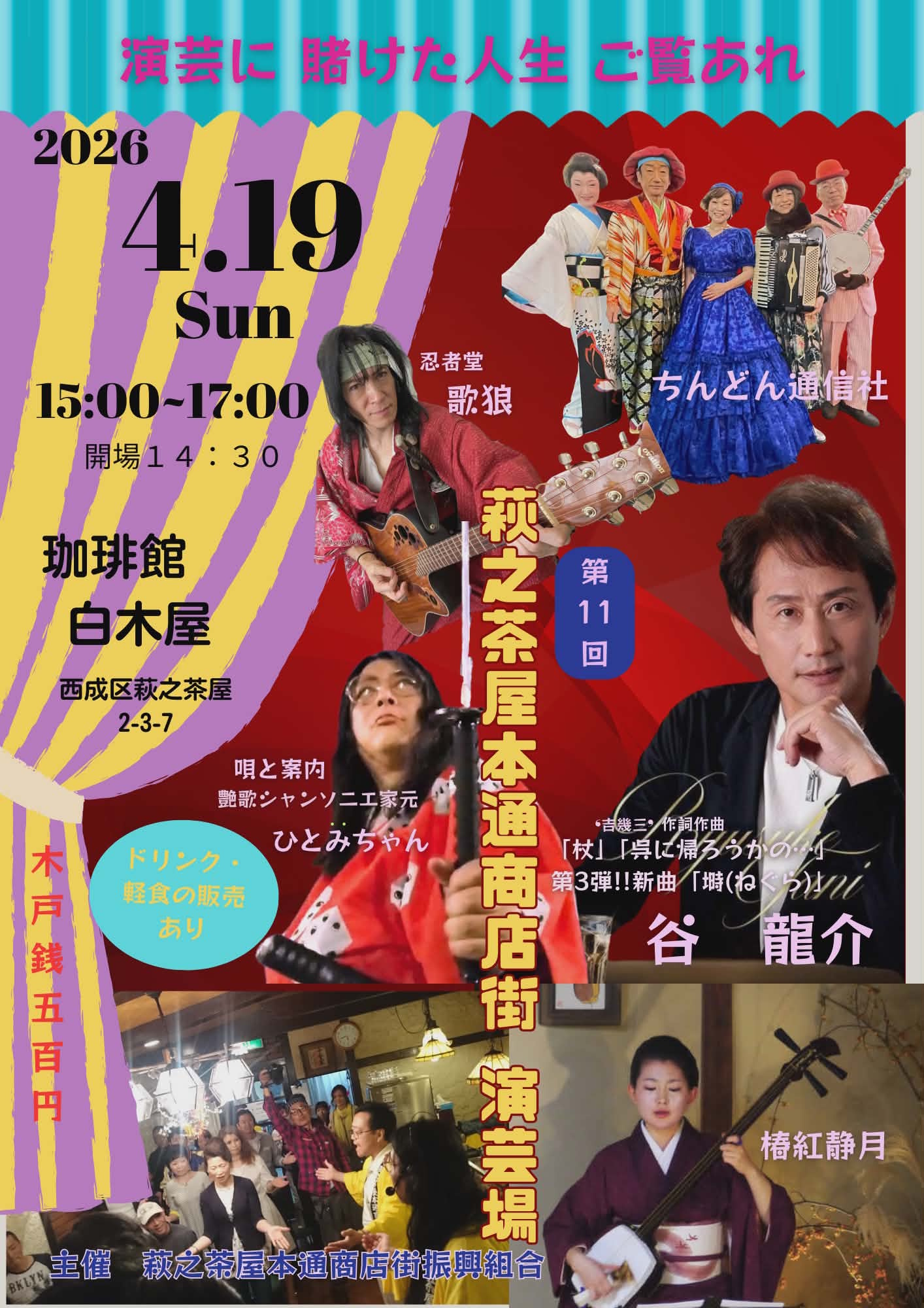4月19日(日)『第11回萩之茶屋本通商店街演芸場』に出演します