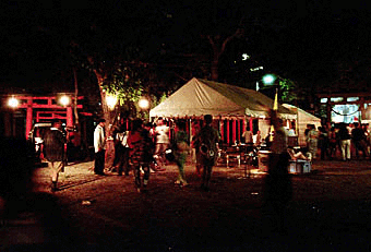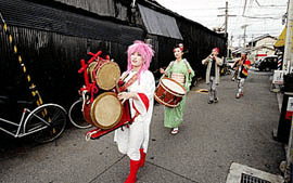 大阪府豊中市岡町の夜店まつり。夕刻から町内を練り歩き、お祭りの宣伝をし、夜はミニステージのトリを務めました。手作りの暖かみがいっぱいの地域の行事です。